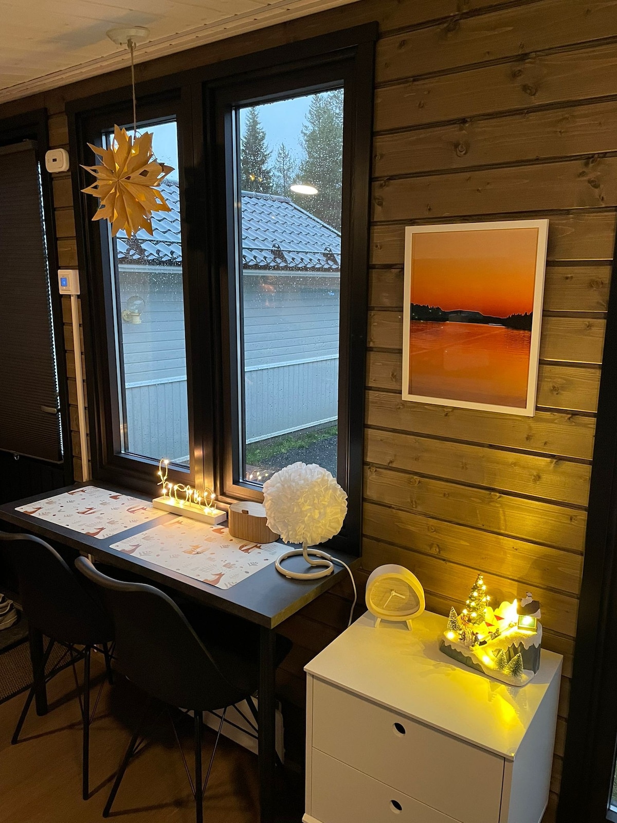 Tuvu pilsētas centram, ērta, mājīga studija. Pilsētas centrs atrodas 1,2 km attālumā. Santa Claus Village atrodas 9 km attālumā. Lidosta atrodas 9 km attālumā. Autobusa pietura blakus mājai. Iegādājieties 200 metru attālumā. Aprīkojums ir lieliski piemērots ilgākām rezervācijām. Gultas var apvienot vai atsevišķi. Pastāstiet mums, ko vēlaties. Ja vēlaties, papildus gultām ir iespējams novietot 70 cm platu piepūšamo matraci. Pieejama vieta automašīnai. Tas maksā 5 € par uzturēšanās reizi. Mājoklis, kas ir ideāli piemērots atpūtai pilsētā vai darījumu braucienam.