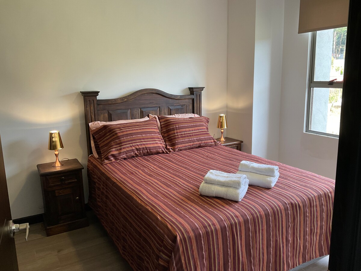 Ideāla vieta darbam un atpūtai, trešais līmenis ar skaistu skatu uz Agua, Acatenango un Fuego vulkāniem! 10 minūšu attālumā no Antigvas Gvatemalas. Droša un privāta vieta ar galveno kontrolpunktu un diennakts reģistratūru. Ērti 5 cilvēkiem, tik daudz papildērtību un zaļo zonu, ka jūs neticēsiet, ka tas ir dzīvoklis! Atrodas Joya de Santa Lucía Condominium premium sektorā. - Lifts - Ekskluzīva sociālā zona uz jumta - Daļēji klāts baseins - Meži, grili un sociālās zonas