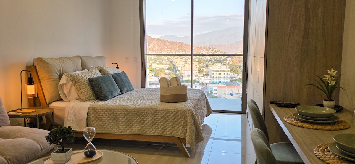 Moderns, pilnībā aprīkots vienistabas dzīvoklis pašā Santa Martas sirdī ar skaistiem saulrietiem krastmalā un dažādām ērtībām, tostarp peldbaseinu, saunu un sporta zāli, lai jūsu atvaļinājums būtu pēc iespējas ērtāks un relaksējošāks. Pastaigas attālumā atrodas Santa Marta starptautiskā jahtu osta un tās skaistais gājēju celiņš, kas aizvedīs jūs uz vecāko vēsturisko centru kontinentālajā Amerikā un kur atradīsiet daudzus restorānus un dzīvīgu nakts dzīvi.