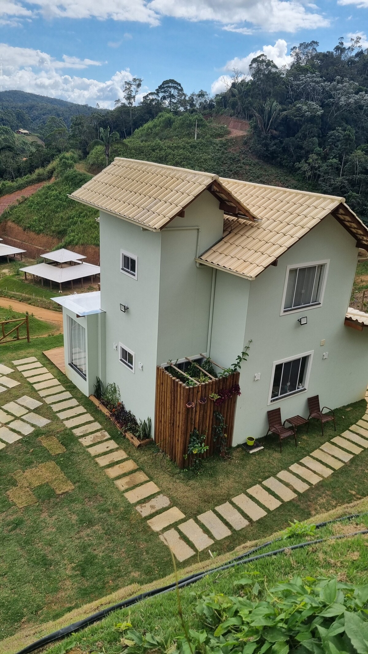 Chácara Vista da Mata. Chácara Vista da Mata, kas atrodas slēgtā kopienā tikai 8 km attālumā no Santaterēzas centra, ir ideāla atpūtas un atpūtas vieta. Ar lielu zāliena pagalmu, kas ir pilnībā ieskauts mājdzīvnieku drošībai, tas piedāvā apsildāmu burbuļvannu ar skatu uz mežu, kā arī šūpoles pārdomām. Ideāli piemērots pāriem un ģimenēm, kas meklē komfortu, privātumu un unikālu miera, atpūtas un saiknes ar dabu pieredzi.