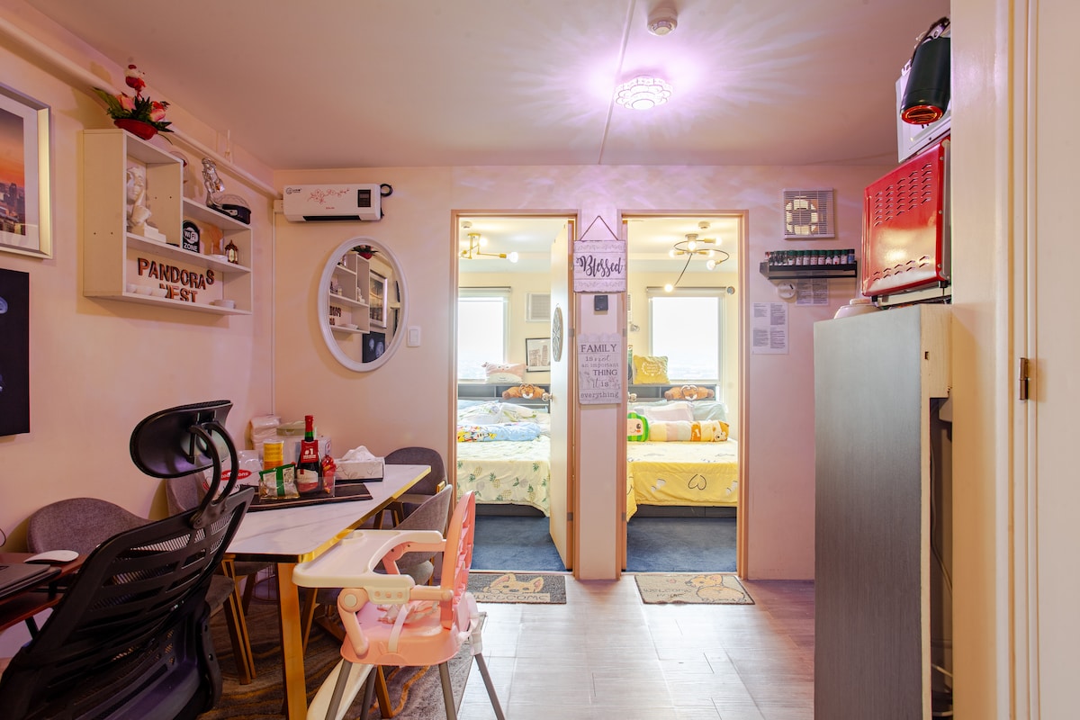 Laipni lūdzam mūsu mājīgajā, estētiski iekārtotajā 2 guļamistabu daudzdzīvokļu namā Urban Deca Homes Ortigas. Atrodas pašā Pasigas pilsētas sirdī. Mūsu mājoklī var uzņemt līdz 10 viesiem. Galvenajā guļamistabā ir Queen izmēra gulta ar izvelkamu gultu, kas ir ideāli piemērota 4-5 cilvēkiem. Otrajā guļamistabā ir divguļamā divstāvīgā gulta un papildu divguļamais matracis, nodrošinot guļvietu līdz 6 viesiem. Mēs arī lepojamies ar to, ka esam piemēroti mīļdzīvniekiem! Ņemiet līdzi līdz diviem mīļdzīvniekiem, lai izbaudītu uzturēšanos kopā ar jums.