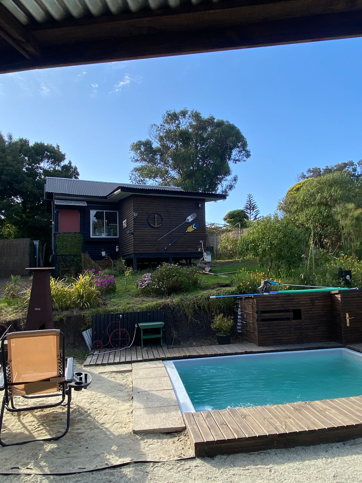 skaista vieta lauku centrā, tālu no pilsētas trokšņa, rītausmā jūs pārdomāsiet putnu dziesmu, lielu vietējo augu daudzveidību, pārgājienu zonas - velosipēdi, 15 minūtes no karabīnes. Lielisks 4G tālruņa signāls. MŪZIKA LĪDZ PLKST. 22:00. NAMIŅŠ AR SAVU BASEINU Unikāls un ekskluzīvs namiņš ar savu baseinu, jums nebūs jādala baseins ar citiem cilvēkiem. Baseinā ir liels klājs un atpūtas krēsli.