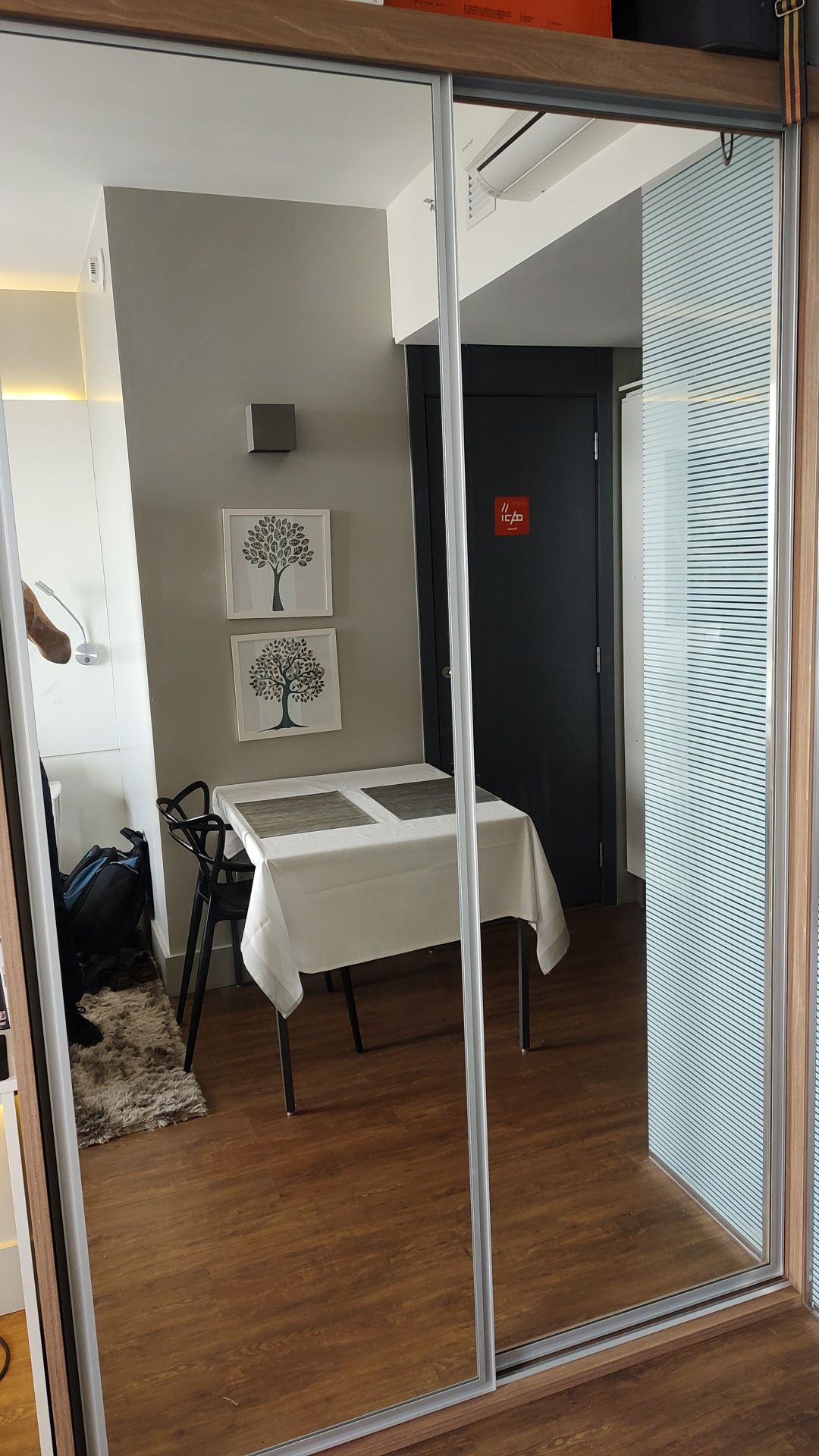 Apartamento com garagem e ar-condicionado, com vista incrível do 21º andar, Studio em condomínio clube de alto padrão. Áreas comuns com piscina aquecida, academia, coworking, sauna, lavanderia, playground e mercado autônomo. Acomoda 4 pessoas (1 cama casal e 1 sofá-cama), equipado com enxoval completo, ducha relaxante, cozinha planejada com diversos eletrodomésticos e utensílios, e TV Smart moderna que garante o entretenimento.