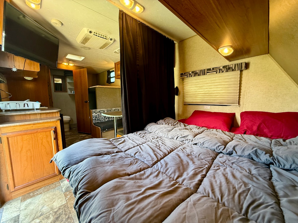 Izbaudiet šo unikālo un mierīgo atpūtu uz ūdens. Plašs namiņš diviem, kas atrodas pludmales tiešā tuvumā, vai zivis ārpus mūsu piestātnes. Šī 1 guļamistaba, 1 vannasistaba un virtuves kabīne ir gatava jūsu atvaļinājumam! Bērniem viss būs kārtībā, bet būs nepieciešamas paletes. Pludmale ir lieliski piemērota makšķerēšanai, krabjiem, lidojošiem aitām, smilšu pilīm vai vienkārši atpūtai. Jums ir pietiekami daudz vietas, lai jūs varētu izklaidēties un izbaudīt savu laiku. Blakus namiņam ir arī 50 amp kempera āķis. Papildu 50 $ par nakti