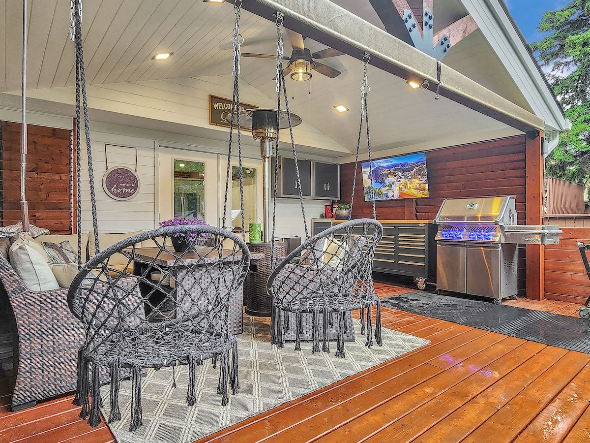 This spacious 5-bedroom newly renovated bungalow (duplex) is without a doubt 'A Hidden Gem' find in YXE! Nestled in the heart of Lakeview. Comfortably accommodating up to 10 guests - Featuring natural material accents & greenery that offer the perfect blend of comfort, convenience and a pinch of luxury — From our beautiful kitchen, private roofed deck, outdoor cooking area to the hot tub and enclosed Spring-Free trampoline Our space has been well thought out to suit all your travel needs.