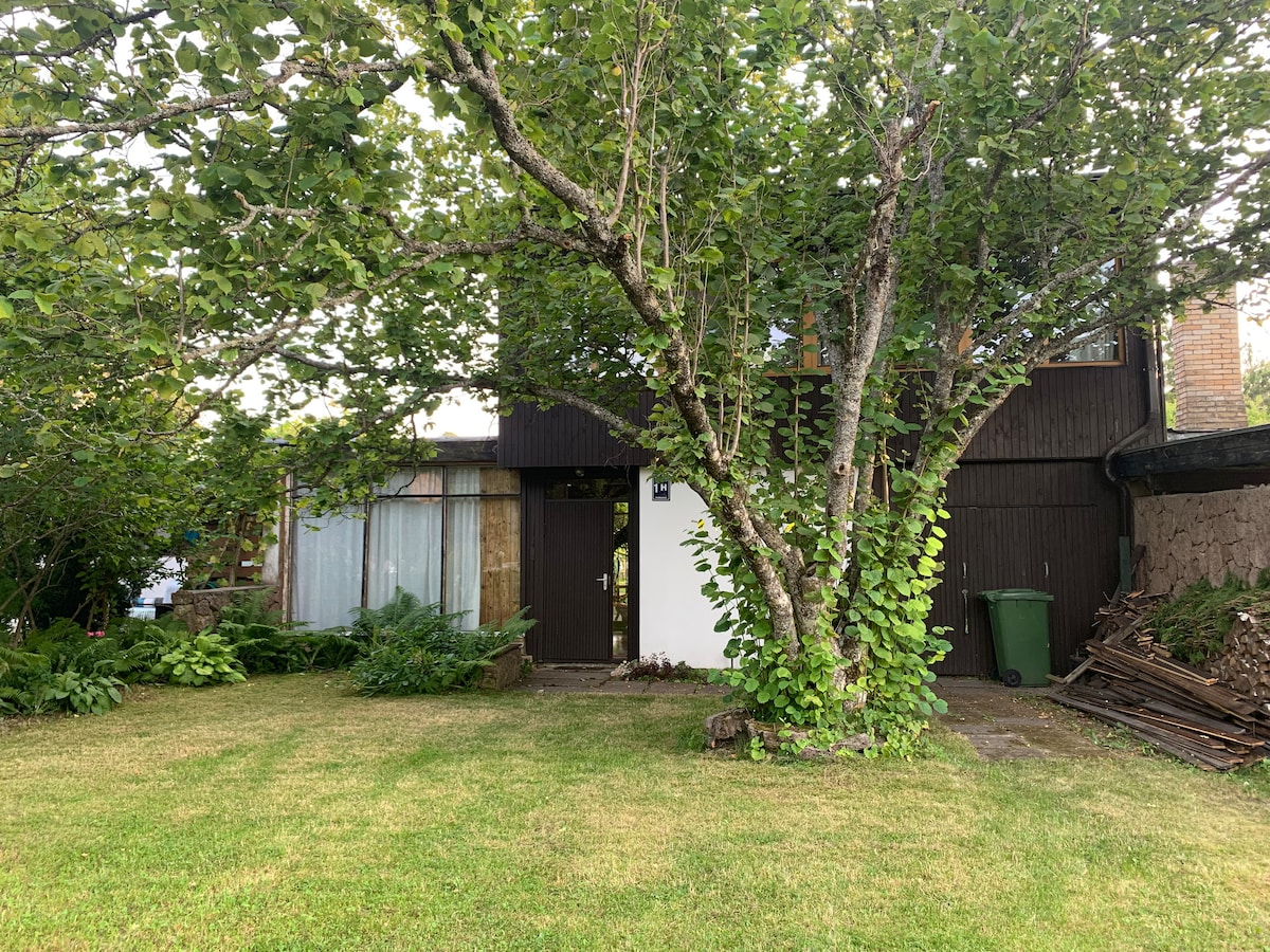 Laipni lūgti manā mazajā paradīzē! Atvērtā plānojuma mājoklis, kas pieejams īstermiņa rezervācijām, ceļojot vai pavadot laiku Rīgā. Tas ir ideāli piemērots 1–3 viesiem, kuri meklē mieru, dabu un komfortu. Māja atrodas tikai 2 km attālumā no klusas pludmales netālu no Saulkrastiem, un tā atrodas uz meža ieskauta grants ceļa mierīgā dzīvojamajā rajonā. Izbaudiet rīta kafiju terasē, ko ieskauj skujkoki, hortenzijas un 80 ziedošas rozes, un jums traucē tikai putnu dziesmas. Apmeklējiet vietējo sestdienas tirgu, lai iegādātos dabisku pārtiku.