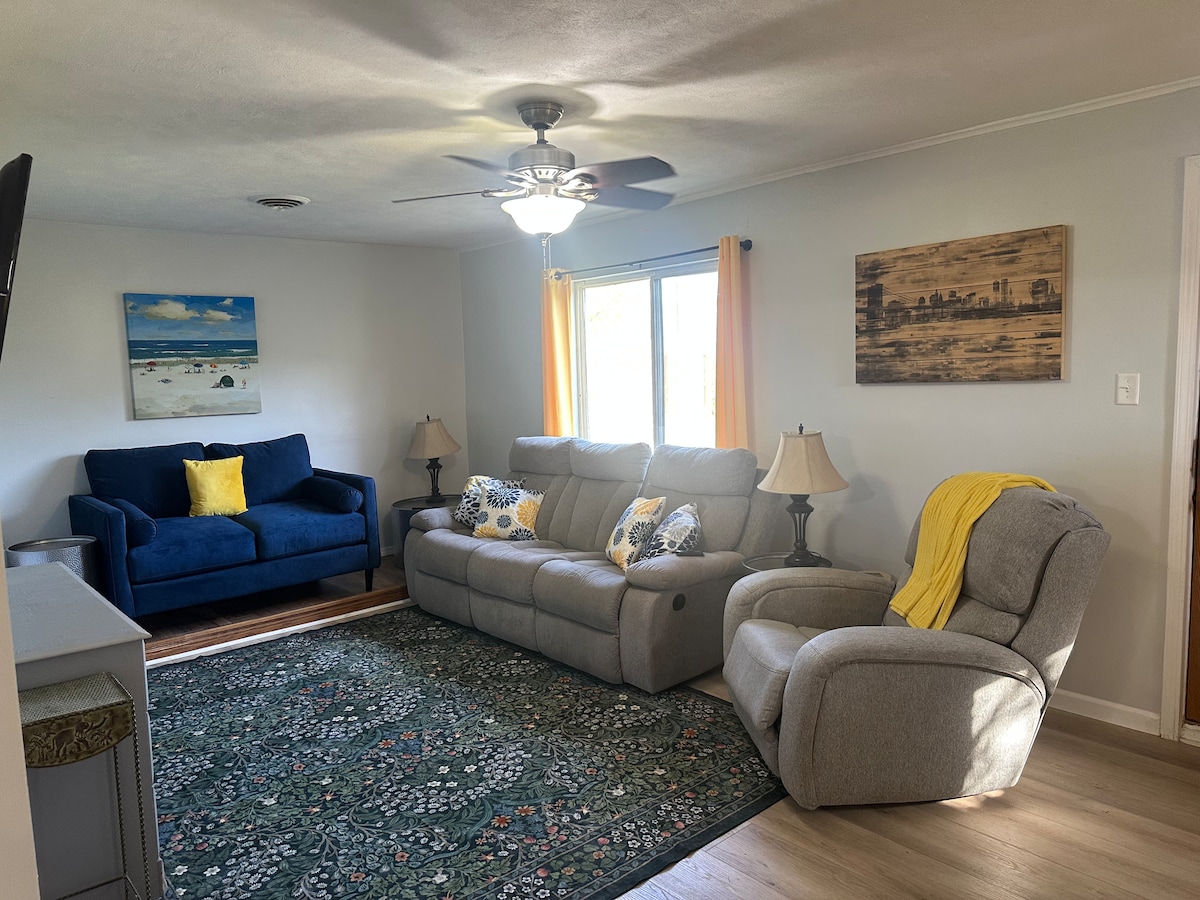 Mums ir unikāls vecāks mājoklis jaukā apkaimē. Šajā mājoklī ir 2 guļamistabas ar "king" izmēra gultām, dīvāngultu, piepūšamo matraci un "pak-n-play". Malkas kamīns piešķir mājoklim mājokli mājoklim mājokli mājoklī siltumu. Lielajā, iežogotajā pagalmā ir pieejama ugunskura vieta, kā arī gāzes grils. Pilnībā aprīkotā virtuvē jābūt visam, kas nepieciešams, lai sagatavotu un pasniegtu jauku maltīti. Priecāsimies jūs uzņemt.