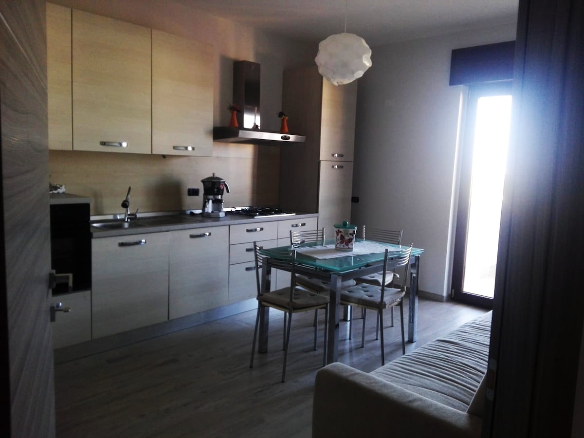 Un grazioso appartamento di 50 mq divisi in: cucina soggiorno con divano letto; camera matrimoniale con possibilità di aggiungere culla, bagno con doccia. L'appartamento è situato a Scafati, a soli 2 km da Pompei ed a 20km da Napoli, Salerno, Costiera Amalfitana e Penisola Sorrentina. A 200mt la stazione treni "circumvesuviana" che vi consentirà di raggiungere con facilità Pompei, Napoli, Sorrento. Uscita dell'autostrada Salerno-Napoli a 2km. Bar e minimarket a 30 mt.