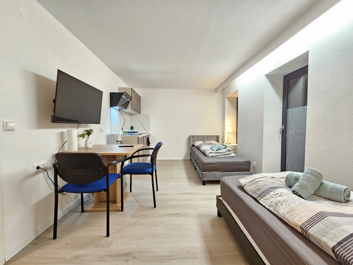 Šis 90 kv. m dzīvoklis četriem cilvēkiem ir ideāls atvaļinājuma vai pārejas mājoklis. Tas ir ideāli piemērots neaizmirstamām brīvdienām un darījumu ceļotājiem, regulāro braucienu veicējiem un montieriem. Naktsmītne ar gaismas pārplūdi atrodas ērtā vietā, tikai 4 km attālumā no A8 šosejas. Dzīvoklim ir liela dzīvojamā un ēdamzona, 2 guļamistabas, 2 vannasistabas, pilnībā aprīkota virtuve un mājīgs balkons.