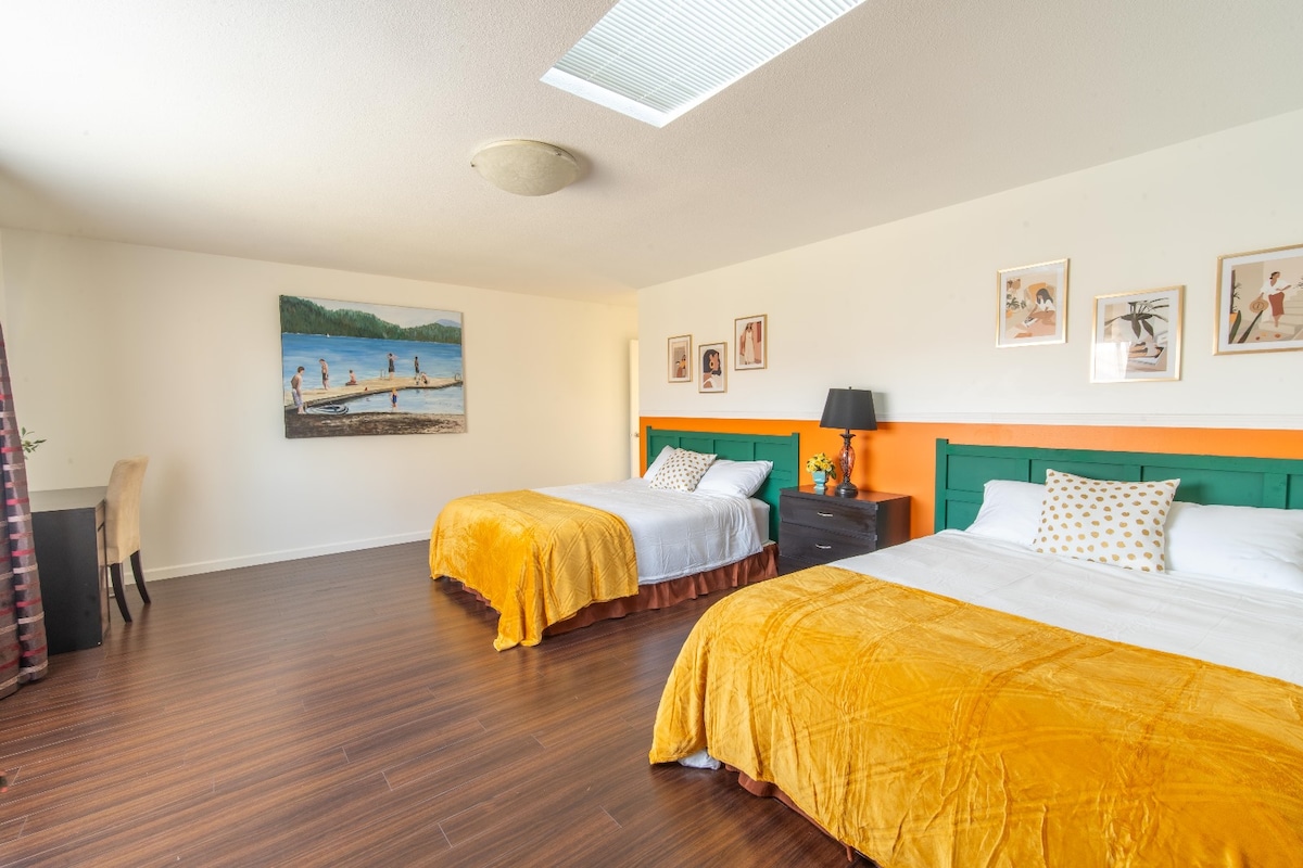 Laipni lūdzam Sunnymede Vacation Stay - jūsu plašajā un mājīgajā atpūtas vietā pašā Ričmondas sirdī. Izbaudiet aprīkojumu, tostarp "king" izmēra apartamentus, divvietīgas virtuves, īpašu darba vietu, gaisa kondicionētāju, starojuma apkuri, veļas mazgātavu numurā, bezmaksas autostāvvietu un ērtu pašreģistrēšanos. Atpūtieties plašajā pagalma dārzā vai izpētiet tuvumā esošo Ričmondas centru, Minoru parku, restorānus, lielveikalus un kopienas centru. Autobusa pietura pie jūsu namdurvīm - tikai 5 minūšu brauciena attālumā līdz SkyTrain. Ideāli piemērots ģimenēm un darījumu ceļotājiem.