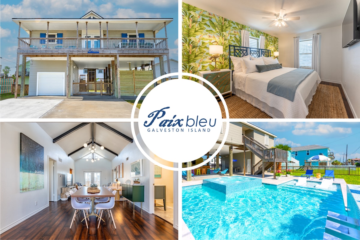 Welcome to Blue Haven Cottages! NEW property with 2 units - separate rentals (Breezeway & Bayview) & private pool in a serene neighborhood. Behind the Galveston State Park and overlooks the Bay. Each unit offers a cozy, spacious/modern interior, 65 in smart TV, fully stocked kitchens, dining areas, 2 bedrooms with king beds, 50 in smart TVs, bunk beds 2 twin, 2 ½ bath and stunning views from various deck. Beach access #16, dine at Waterman’s, Dollar General (basics/meds), a 2-3 min drive.
