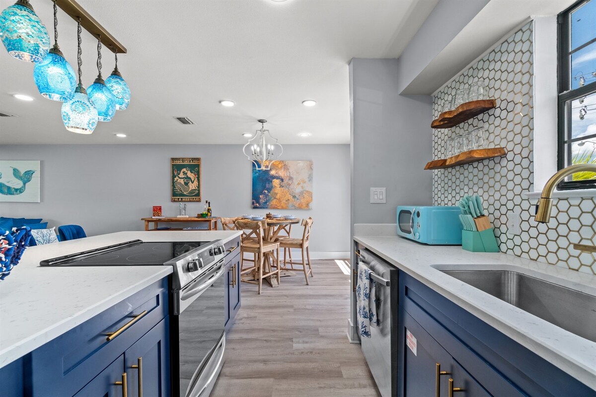 2 gultu/2 vannasistabu mājoklis ar plašu privātu pagalmu, dažu kvartālu attālumā no pludmales uzņem līdz 6 viesiem MĀJDZĪVNIEKI BEZ MAKSAS :) Viesistabā ir plakanā ekrāna Roku televizors, aizmugures durvis ved uz terasi ar grilu Galvenajā guļamistabā ir divguļamā gulta (Queen), pilnībā aprīkota vannasistaba ar dušu/vannu. Viesu guļamistabā ir divas vienguļamās gultas un divstāvīga gulta. Viesu vannasistabā ir duša Virtuves zona ir pilnībā aprīkota ar visu, kas nepieciešams, lai pagatavotu savu iecienītāko maltīti