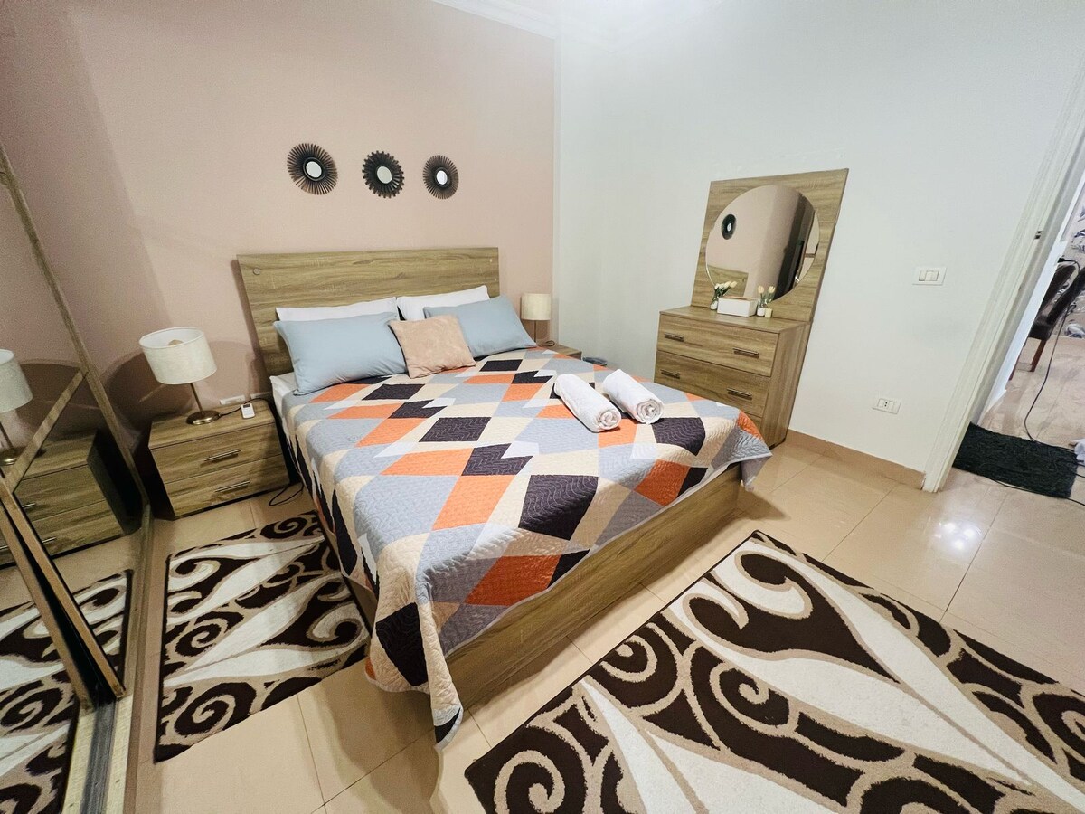 Enjoy a comfortable stay in our modern apartment, ideal for business or leisure. Located near top attractions and restaurants. Features include a full kitchen, cozy living area, comfy bedrooms, clean bathroom, and high-speed Wi-Fi. Entire apartment is for registered guests only. As per Egyptian law, unmarried Egyptian/Arab couples cannot stay. ID/passport and marriage certificate (it’s a must) are required before check-in.