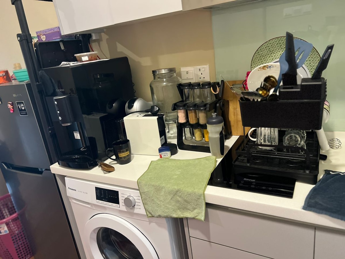 Izbaudiet stilīgu piedzīvojumu šajā centrā esošajā mājoklī. #Staycation #KotaDame Emporis SOHO Come with with - 1 divguļamā karalienes gulta - tiks nodrošināti 2 svaigi dvieļi - Veļas mazgājamā mašīna (BEZ MAKSAS~!) - Fēns - Ledusskapis - Tējkanna - Gaisa fritieris - gludekļa komplekts - WIFI (100mbps LAIKS Fiber) - Zīmola TV KASTE (EV Pad) - 4K projektora ekrāns (vairāk nekā 100 collas) Reģistrēšanās laiks ir no plkst. 15:00, bet izrakstīšanās - plkst. 11:00.