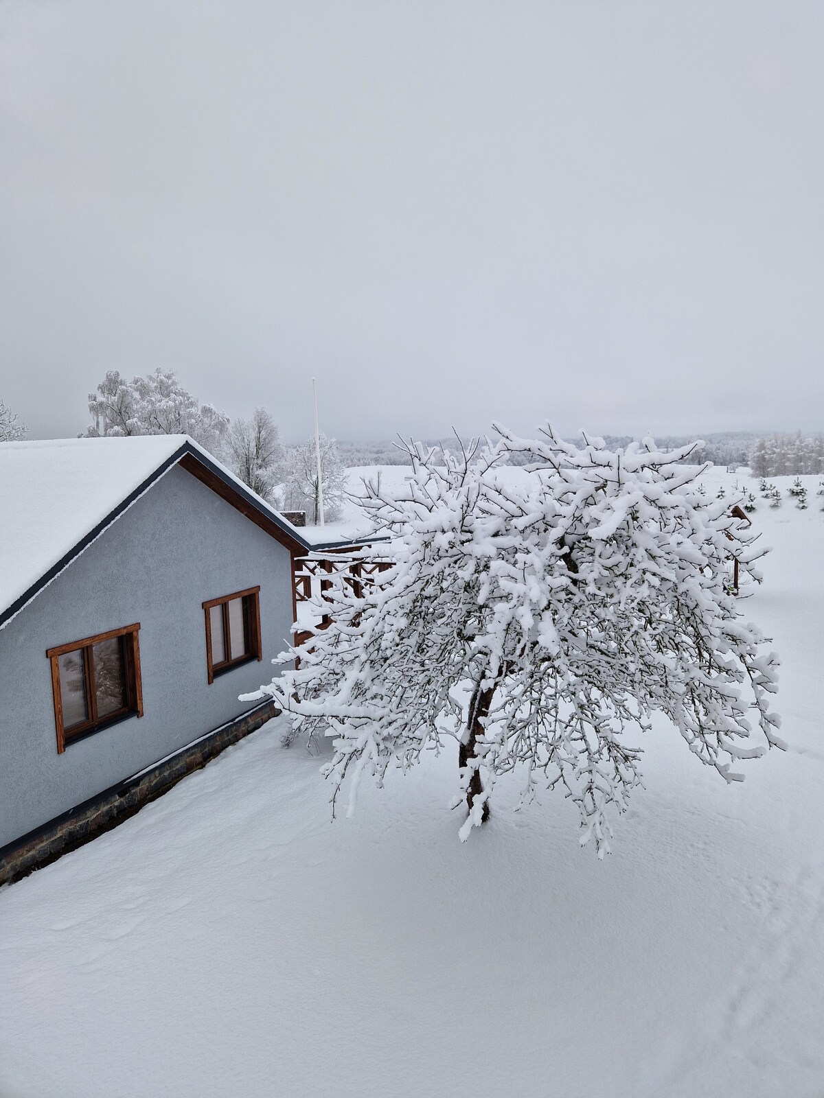 Private lodge – hideaway from noise, rush and sometimes from other people. The clean air and the sounds of nature act as a therapy. Sleeping in silence is a wonderful feeling. We have fixed beds: 1 double, 1 single; we can make 2 more singles. Equipped kitchen with utensils. Outdoor patio and grill. WiFi. Hygiene room, shower. We welcome our guests all year round, 24/7. We welcome pets with pets. Sauna subject to charge. Transport from/to the city subject to charge.