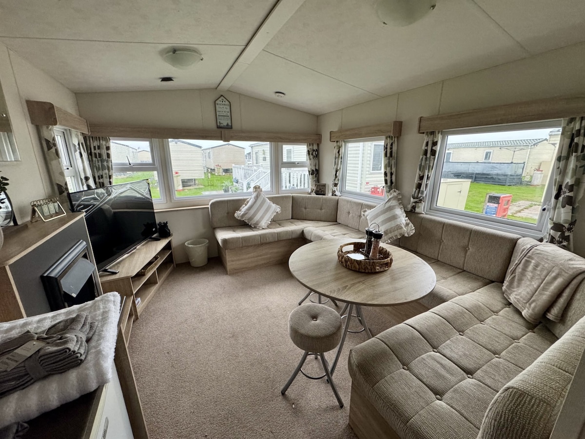 Here we have our lovely holiday home to rent on fantastic five star holiday park, Seal Bay Resort in Selsey . We are on West sands, short walk to the complex and beach. Lovely sunny position with parking. Our holiday home offers many home from home features such as washing machine/dryer, dish washer, double oven, 5 burner hob, microwave, full size fridge freezer, unlimited wi fi. Bath and shower room plus ensuite toilet and shower to master bedroom. All rooms are equipped with tv's.