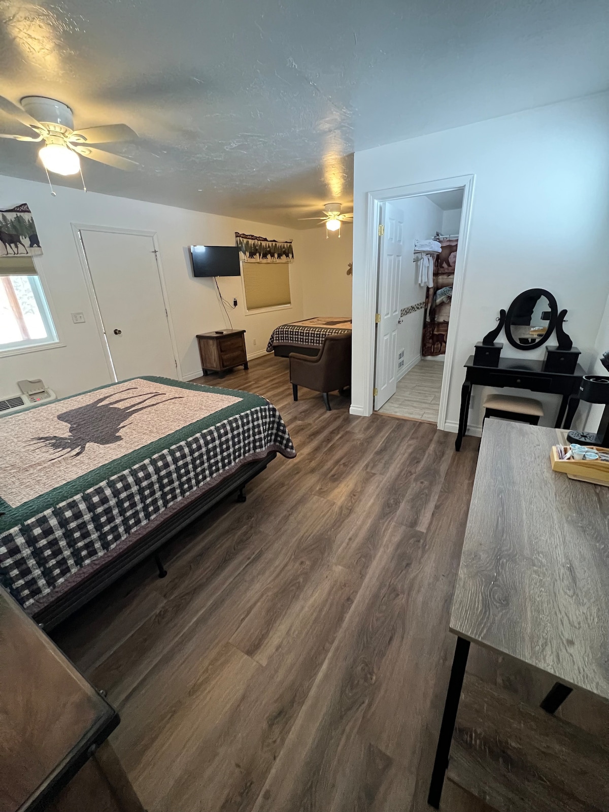 Whether seeking serenity or adventure you can be tucked away in the middle of a National Forest, surrounded by scenic landscape with easy access to forest roads and atv trails. Handcrafted luxury meets Rustic Charm in this 750 sq. ft. open floor plan with queen bed, futon sofa, work space , full kitchen, dining area and bathroom with shower and washer/dryer. Private entrance and parking, outdoor seating area for viewing the meadows and wildlife. Easy access with mesh wifi, Roku tv