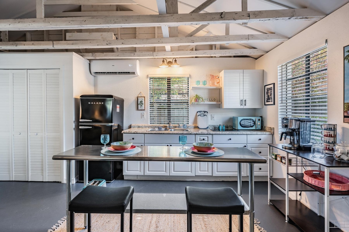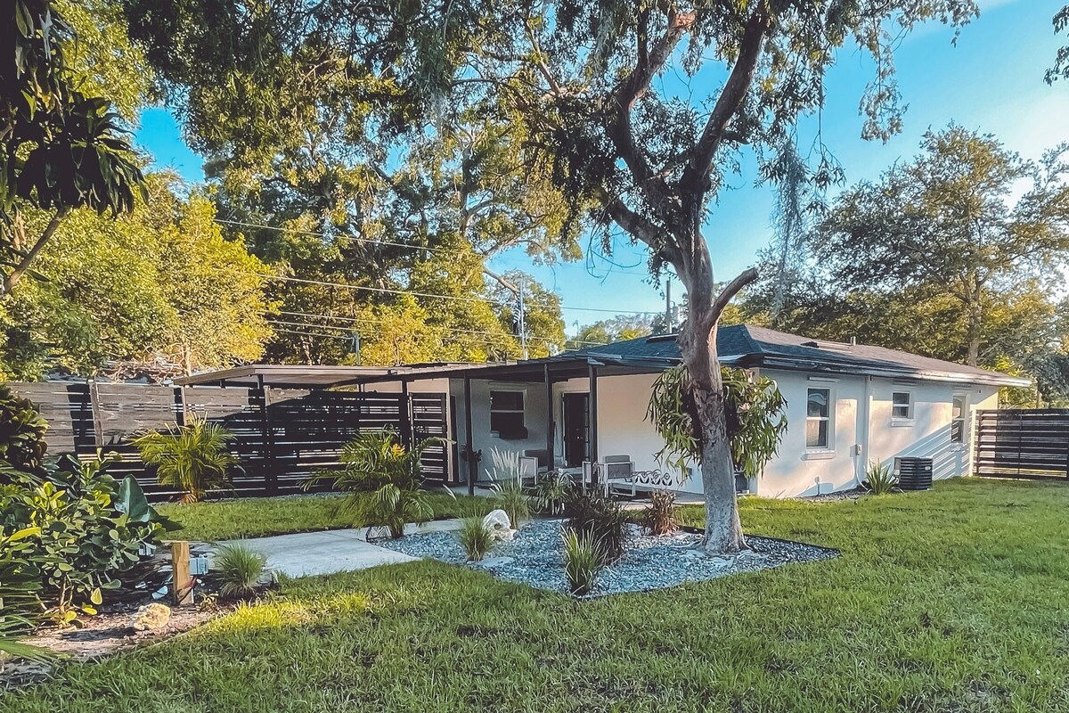 Seminole Heights savdabīgajā vēsturiskajā apkaimē jūs gaida tropiska vide...Šī piekrastes kotedžas stila atpūtas vieta Tampā, FL, ietver visu, kas jums būs nepieciešams nedēļas nogales atpūtai, tostarp "queen" izmēra gulta, pilnībā aprīkota un aprīkota virtuve, pilnībā aprīkota vannasistaba ar vannu/dušu, saliekama veļasmašīna/žāvētājs, gludeklis, gludināmais dēlis un fēns. Grilējiet vakariņas un izbaudiet Floridas laikapstākļus ārā savā privātajā pagalma terasē ārpus kotedžas.