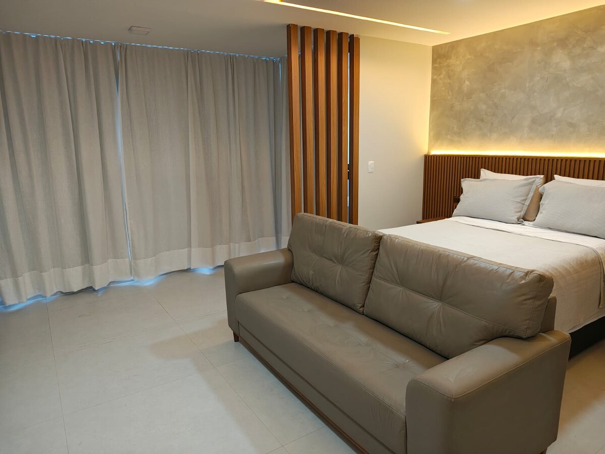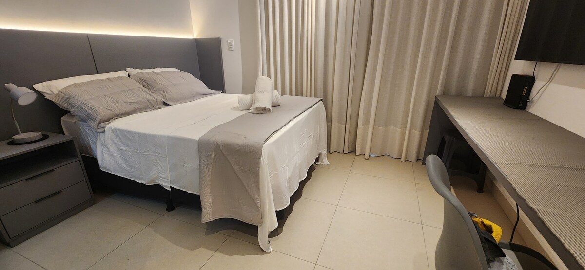 Komforts un praktiskums Jardim Camburi sirdī Mājīgs lofts, kas atrodas Jardim Camburi centrālajā reģionā. Ideāli piemērots tiem, kas meklē komfortu, praktiskumu un lielisku atrašanās vietu gan darbam, gan atpūtai. Tajā ir gaisa kondicionētājs, maltīšu pagatavošanas zona, kafijas automāts, internets un divguļamā gulta, ko var pārveidot par divām vienguļamām gultām. Lieliska atrašanās vieta, netālu no restorāniem, lielveikala un dažu minūšu attālumā no Kamburi krastmalas. Ideāli piemērots klusam un funkcionālam mājoklim Vitorijā