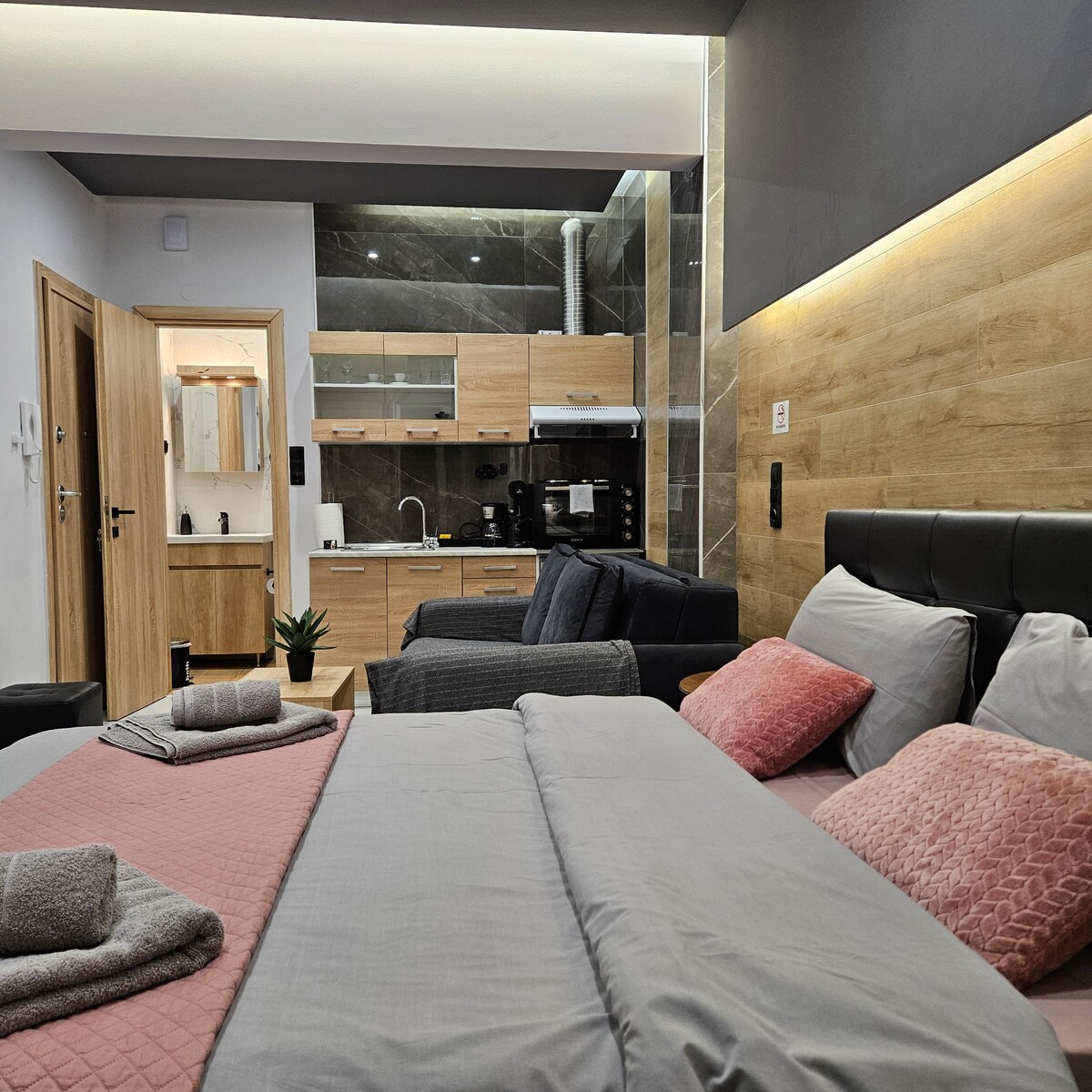 Jūtieties kā mājās Serresā - silts un īpašs piedzīvojums! Vai meklējat ne tikai mājokli? Laipni lūdzam jūsu mājoklī mūsu skaistajā rajonā tikai 10 minūšu gājiena attālumā no dinamiskā Serres centra. Mūsu dzīvoklis atrodas sešu stāvu ēkas 4. stāvā un nodrošina bezmaksas autostāvvietu, novērošanas kameras un liftus. Ar mājīgu iekārtojumu un visām ērtībām. Tajā ir plaša vannasistaba, pilnībā funkcionāla virtuve, ērta divguļamā gulta un mājīga viesistaba.