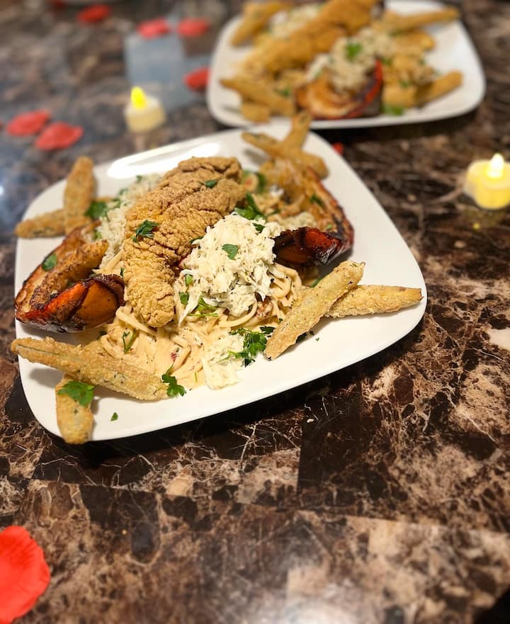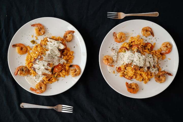 Izbaudiet maltīti vismaz 2 cilvēkiem, kas ietver 1 salātu vai uzkodas, 2 augstākās kvalitātes olbaltumvielas, 1 standarta proteīnu, 2 augstākās kvalitātes puses, 1 standarta pusi, vakariņu rullīšus un dzērienu.