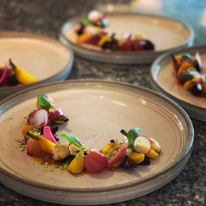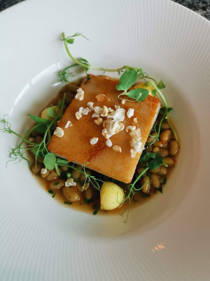 Izmēģiniet 4 ēdienu Vidusjūras ēdienkarti ar sezonāliem starteriem, elektrotīkliem un desertiem.