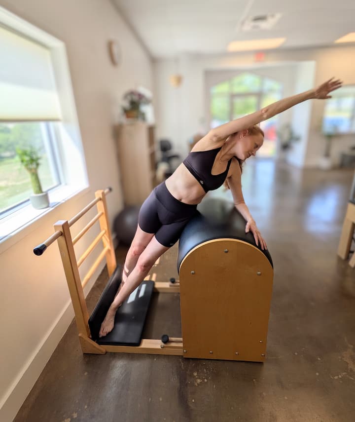 Individuāla 50 minūšu Pilašu sesija mūsu Dripping Springs, TX studijā, izmantojot specializētu Pilates aprīkojumu, ko piedāvā Balanced Body.