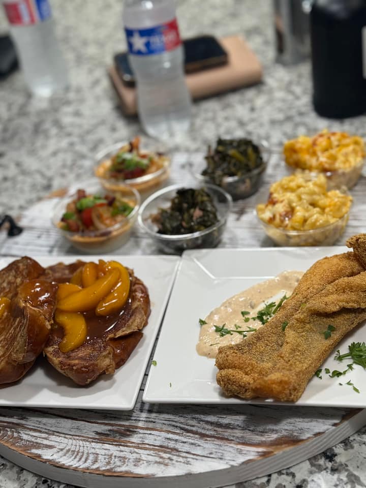 Izbaudiet izcilas dienvidu vēlās brokastis, kurās komforts satiekas ar izsmalcinātību. Baudiet ēdienus, piemēram, sviestainas garneles un putraimus, ar trifelēm pildītu maku un sieru, persiku bruģakmeņu vafeles un medus sviesta cepumus, kas pagatavoti ar elegantu restorāna kvalitātes pārklājumu. Katra ēdienkarte ir veidota ar nodomu, dvēseli un greznību, kas klasiskās dienvidu garšas pārvērš neaizmirstamā maltīšu baudījumā