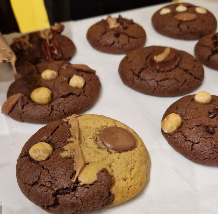 Šajā komplektā ietilpst 2 brauniji, 2 šķīstošās šokolādes cepumi un 2 šķīstošās šokolādes kēksiņi.