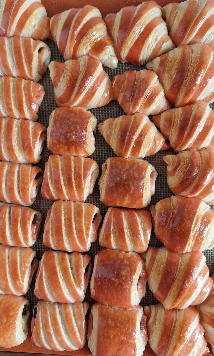 Šajā piedāvājumā ietilpst mini šokolādes kruasāni, mini piena kruasāni, mini cepumi, mājās gatavots smēriņš, kā arī salvetes un ēdamrīki.