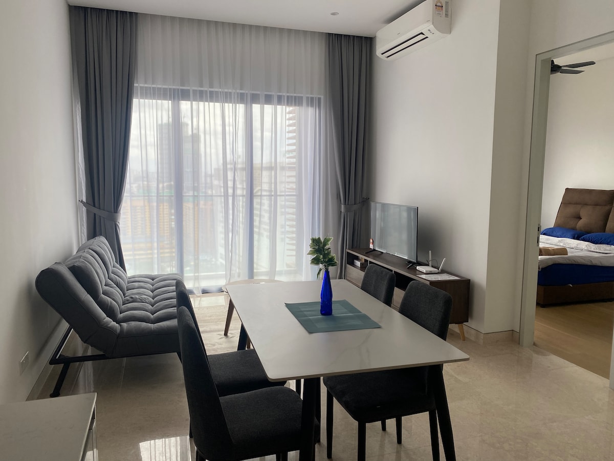 Atrodas netālu no KLCC Jalan Sultan Ismail tieši pretī Sheraton viesnīcai un 1-2 km attālumā no Shangri-La Kuala Lumpur, Bukit Bintang, paviljona. KL Tower , Petronas Twin Tower, pasaulē 2. augstākais PNB118. Mana ēka bija privāta ēka, kas tieši savienota ar tirdzniecības centru un dzelzceļa staciju tikai 25 metru attālumā ar Aircond gājēju celiņu. Neticami ērts, zīmola jaunumu viesnīcas tipa dzīvoklis ar Netflix kontu gatavs 58 collu Sharp 4K 3D TV, Apple TV 4K versija. Mēbelēts ar 1 divguļamo gultu + 1 divguļamo gultu + 1 vienguļamo gultu.