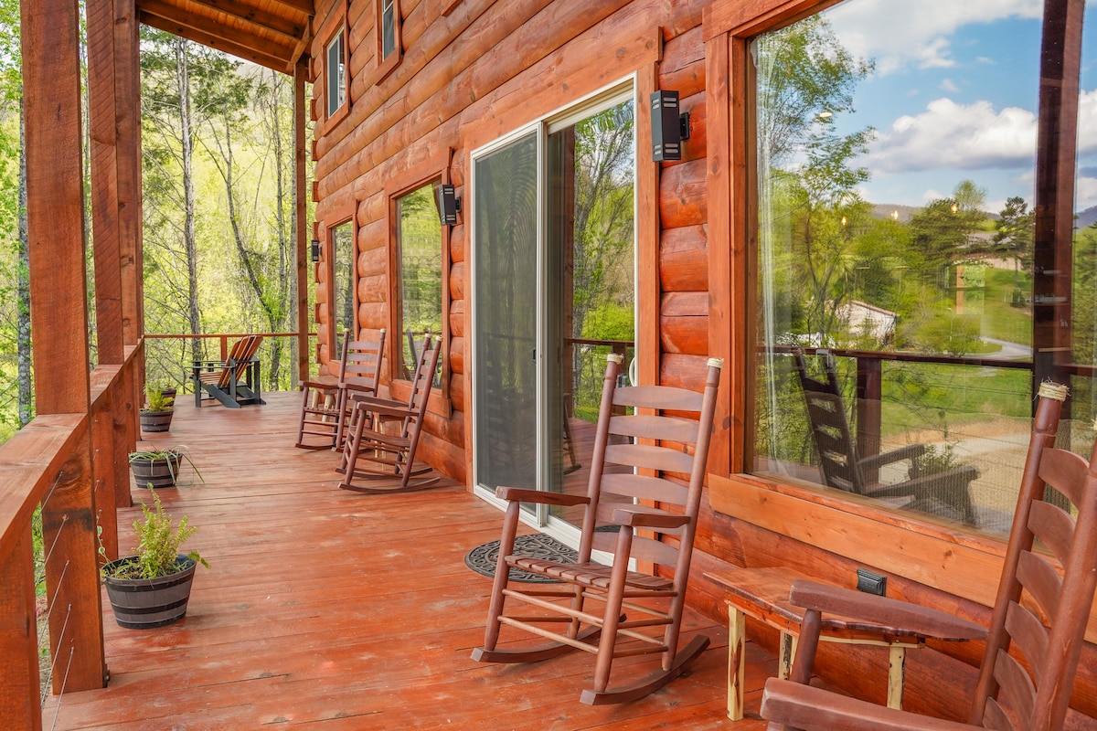 SkyView Lodge is a log cabin built with a view of the Cherokee National and the Smoky Mountain National Forest. Its design maximizes enjoying the incredible views from every room. Ideally located close to white water rafting, zip-lining, hiking, & scenic drives. Within driving distance of the cities of Gatlinburg (35 min), Pigeon Forge (40 min), Tennessee, & Asheville (1 hr) & Hot Springs, NC The Foothills Parkway can be seen from the property. Visit our Youtube channel for a walk through