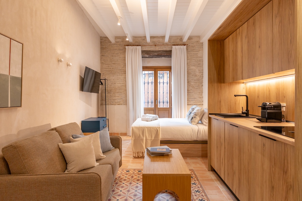Si vous recherchez un endroit calme, confortable et soigné. Vous y êtes. Appartement récemment rénové, joliment décoré. Profitez du confort d'un appartement bien meublé avec une cuisine et un lit confortable. Vous pourrez lire dans le canapé, travailler dans l'espace de travail, profiter d'une bonne connexion wifi. Ou, vous pourrez profiter d'un bain chaud dans le jacuzzi en buvant un verre de vin. Situé à 2 minutes à pied de l'Arche de la Macarena, 5 minutes de Feria, 10 min du Guadalquivir.