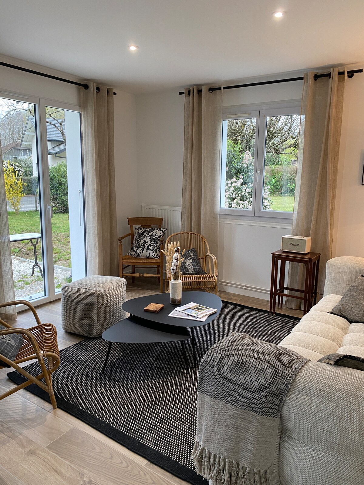 Ce logement, proche de la route, refait à neuf, vous offre tout le confort pour passer un bon séjour. Situé proche du lac, de la piste cyclable, arrêt de bus à 100 m et à 15 minutes du centre d’Annecy en vélo. L’environnement proche vous permet de faire de belles promenades, à pied, en vélo et de profiter pleinement des activités nautiques