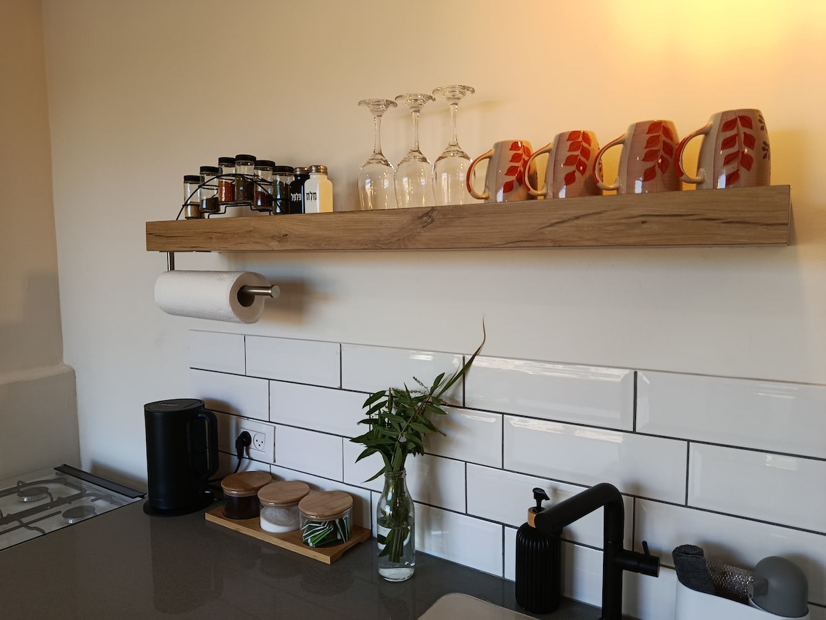 Romantiski lauku apartamenti ar zaļu dārzu🌿, modernu dizainu klusā ciematā starp vīna dārziem. Pilnībā aprīkota virtuve, svaigi garšaugi no dārza, galda spēles un televizors. Ideāli piemērots atvienošanai - tuvumā ir dabas takas🌳. Jūsu mierīgā atpūta no pilsētas jau gaida! ★"Mājoklis bija tīrs un skaists, virtuve bija labi aprīkota. Teritorija ir krāšņa. Nitzan bija ļoti atsaucīgs ar lieliskiem ieteikumiem. Ļoti iesaku!" - Nesenais viesis