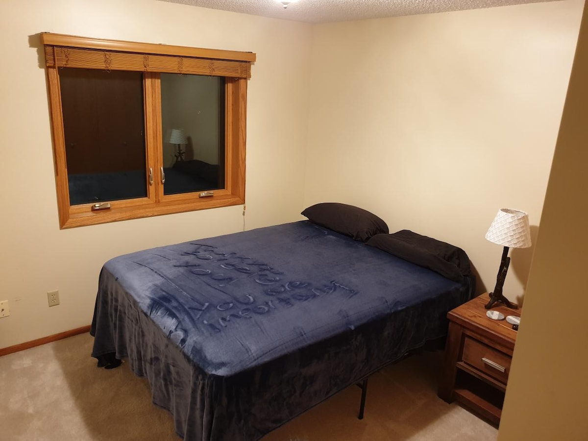 Sveiki! Mums ir skaista vieta, ko saucam par "pilsētas valsti". Mūsu mājoklis atrodas 5 akru platībā ar skatu uz ezeru no neliela ezera(nav pieejams). Jūs rezervētu mūsu 2 līmeņu mājokļa zemāko līmeni. Jūsu mājoklis ir privāts un tā platība ir 2200 kvadrātpēdas. Privāta ieeja, autostāvvieta bezceļa apstākļos. Guļ līdz 9+! Daudz jautru, pārdomātu papildērtību! Sijāts ar burbuļvannu, terasi, kamīnu, minivirtuvi, pilnu sporta zāli, spēļu istabas zonu un daudz ko citu! Mēs atrodamies 1/4 jūdzes attālumā no Coon ezera ar piekļuvi laivošanai un pludmalei dažu jūdžu attālumā. Tikai 20 jūdžu attālumā no Mnpls.