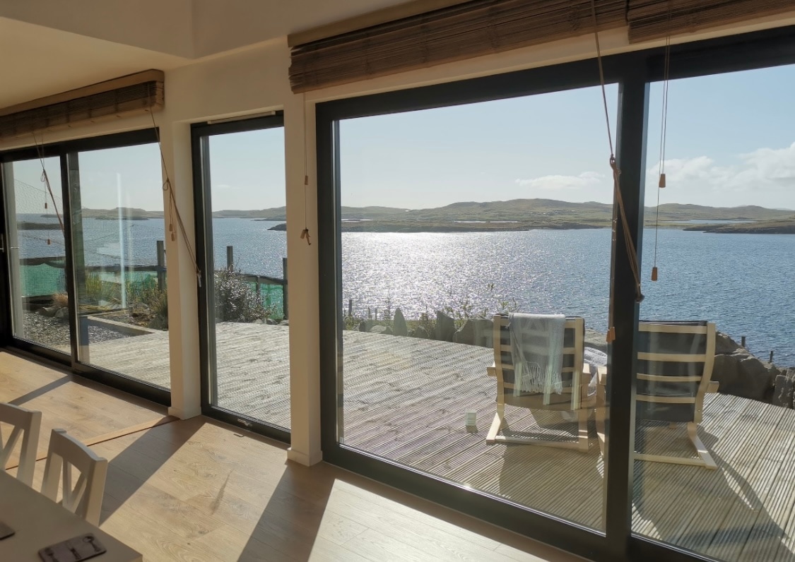 - Īres mājokļi ūdens tuvumā Šetlendas salas