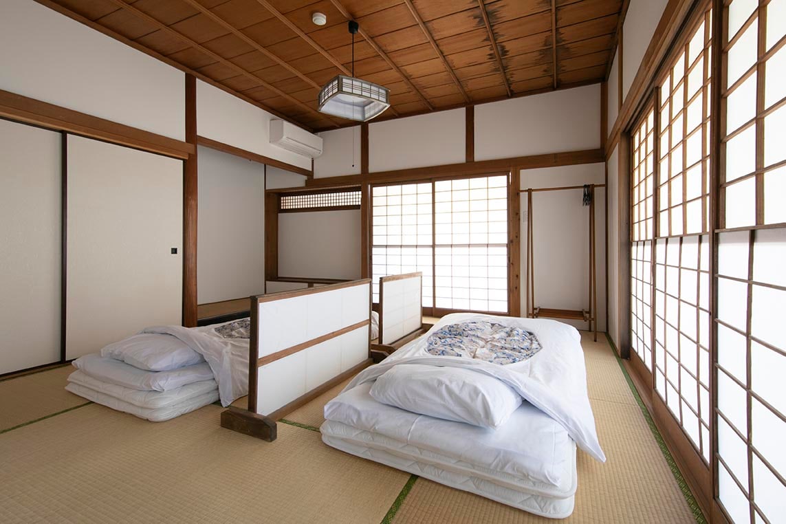 Mūsu japāņu stila viesu nams atrodas netālu no Mijadžimas. Tā atrodas klusā vietā. Tas ir 8 minūšu gājiena attālumā no prāmja, dzelzceļa stacijām(JR stacijas un ielas auto stacijas). Šajā privātajā istabā ir privāta tualete un izlietne. Aiz tā ir daudz koku. Tāpēc, iespējams, atradīsiet simtkājus vai citas blaktis.