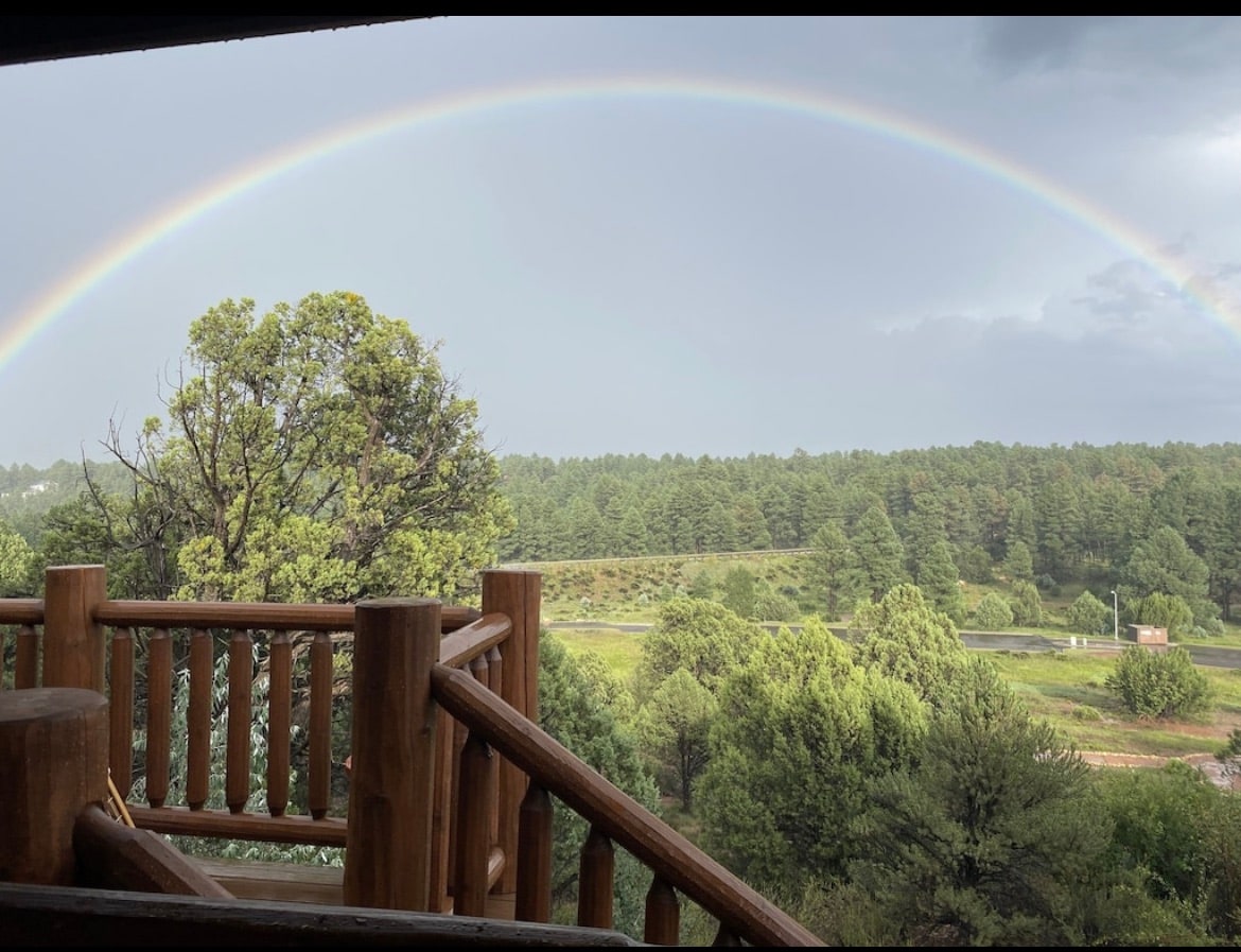 2 fantastiskas rakstāmgalda stacijas - 1 apakšstāvā ar galdu un 1 rakstāmgalds loftā , abas aprīkotas ar 22collu monitoriem, HDMI kabeļiem un daudz kontaktdakšu. 1 BR apakšstāvā ar mājīgu karaļa gultu un piekļuvi pilnai vannai, 500 kvadrātpēdu lofts ar 2 divguļamajām gultām, dienas gultu, rotaļu komplektu, 2 televizoriem un 1/2 vannasistabas. Six Pines Lodge Hexagon Real guļbaļķu namiņš! Pilnībā nožogots un piemērots mīļdzīvniekiem! Vienkārši ņemiet līdzi tualetes piederumus un izbaudiet skaistos Arizonas Baltos kalnus!