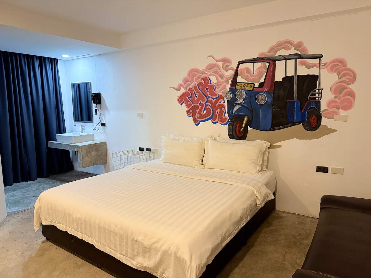 Šī ir liela guļamistaba Chiang Mai Yard Yard viesu namā, aptuveni 24 kv.m platībā, kas apvieno taizemiešu un moderno stilu, gandrīz vērsta uz baseinu, un daži no tiem atrodas tieši pie baseina.Mums kopā ir 9 šādas istabas.Istaba ir piemērota 2 personām, un, ja jums ir jāpievieno trešā persona, jums ir jāmaksā par vēl vienu personu. Šis ir mūsu pašu būvēts Lannas stila pagalma viesu nams ar modernu cementa stilu, tradicionālās Taizemes arhitektūras dabisko vietējo etnisko stilu, modernu minimālisma funkcionālo dizainu un nelielu peldbaseinu, ko ieskauj liels koks. Atrašanās vieta, kas atrodas Čhīanmai vecpilsētas aborigēnu dzīvojamās zonas klusajā rajonā, ir dabiski ļoti laba, tikai 3 minūšu gājiena attālumā no Tha Pae vārtiem un 1 minūtes gājiena attālumā no svētdienas pastaigu ielas.15 minūšu brauciens ar automašīnu no lidostas.Šeit jūs varat baudīt skaisto saulaino pagalmu, ērtas istabas un bezmaksas ceļojumus.