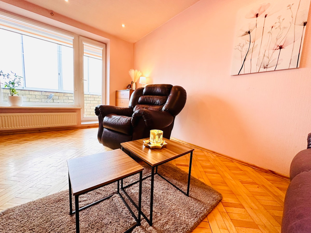Ērts dzīvoklis labā vietā :) Tas ir iespējams 2 viesiem. Tā ir viena dīvāngulta ar ērtu matraci. Veikals atrodas 250 m attālumā. Tirdzniecības centrs "AKROPOLIS" 600 m attālumā. Autoosta 400 m attālumā. Rezervēta autostāvvieta.