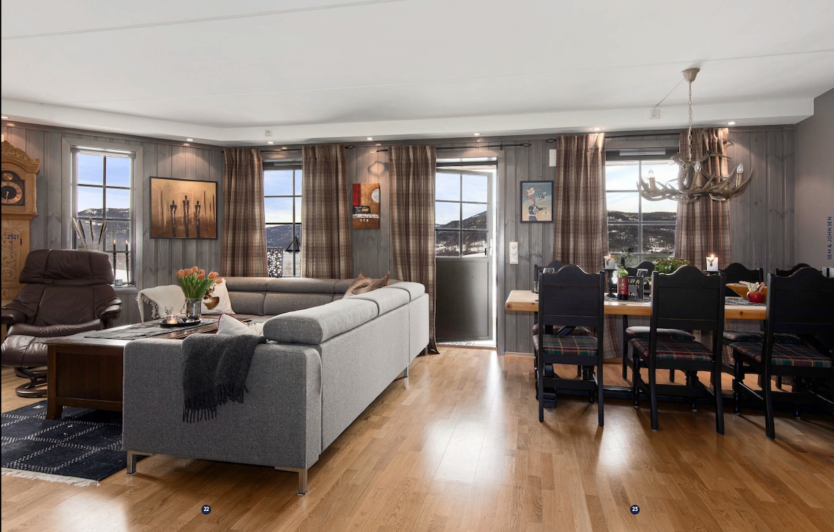 Stilīgs dzīvoklis pie slēpošanas trases ar saunu un skatu uz fjordu