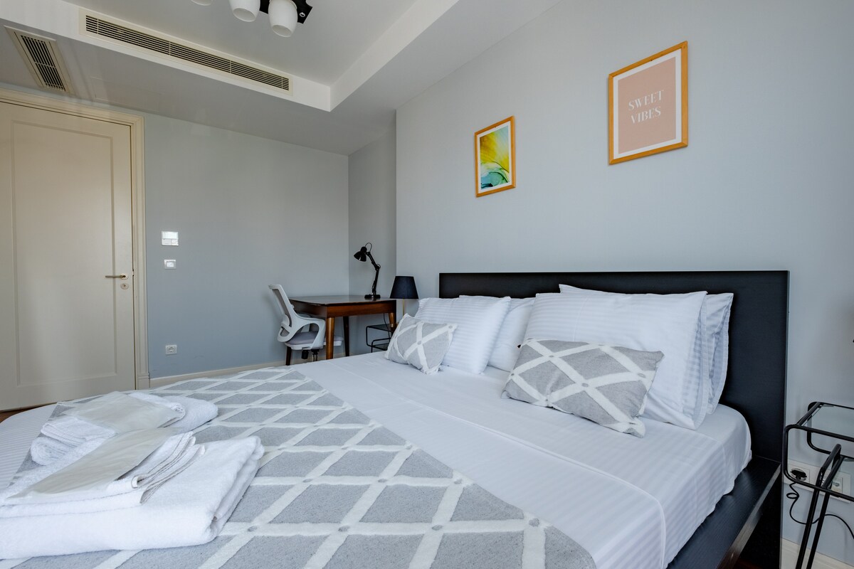 Izbaudiet modernu uzturēšanos Beyoğlu — netālu no Taksimas! Šajā stilīgajā dzīvoklī ir guļamistaba, viesistaba, virtuve un vannasistaba ar apkuri un sezonālu gaisa kondicionētāju (no maija līdz oktobrim). Ēkā ir lifti, diennakts apsardze, kafejnīca un maksas sociālās telpas (sporta zāle, baseins un sauna). Starbucks un Sheraton City Center Hotel atrodas blakus, un jūs varat mūs viegli atrast, Google Maps meklējot "Safezone Homes" 🌿