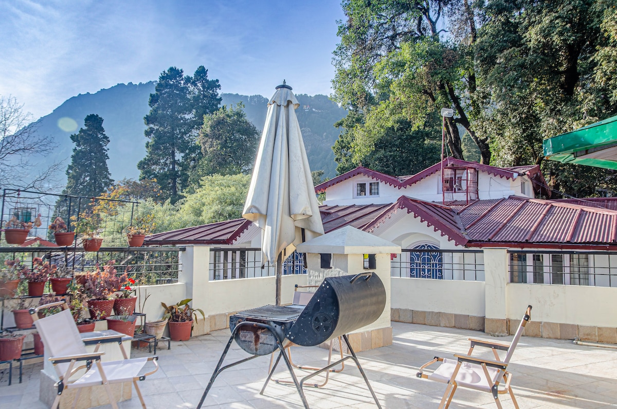 * 3 guļamistabas, 2 vannasistabas grezna kotedža * Atrodas kalna virsotnē ar labāko skatu uz Himalaju sniegu un skatu uz mežu reģionā * Daudzas darba telpas kotedžā un brīvā dabā * Zālieni ap kotedžu, kur ir pietiekami daudz vietas * Pilnībā aprīkota virtuve ar visām ierīcēm * Wi-Fi, autostāvvieta, viedtelevīzija, galda spēles * Dziļie gleznainie līča logi, grils un ugunskura vieta, sauļošanās gultas, ko slinkot, āra ēdināšanas iespējas * Aprūpētājs uz vietas