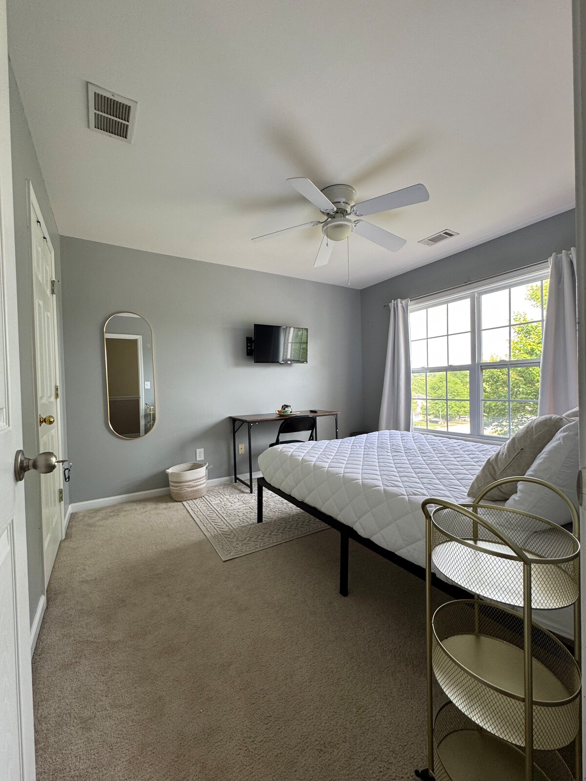Cozy Queen Bed · Work Desk · Smart TV · Upstairs
