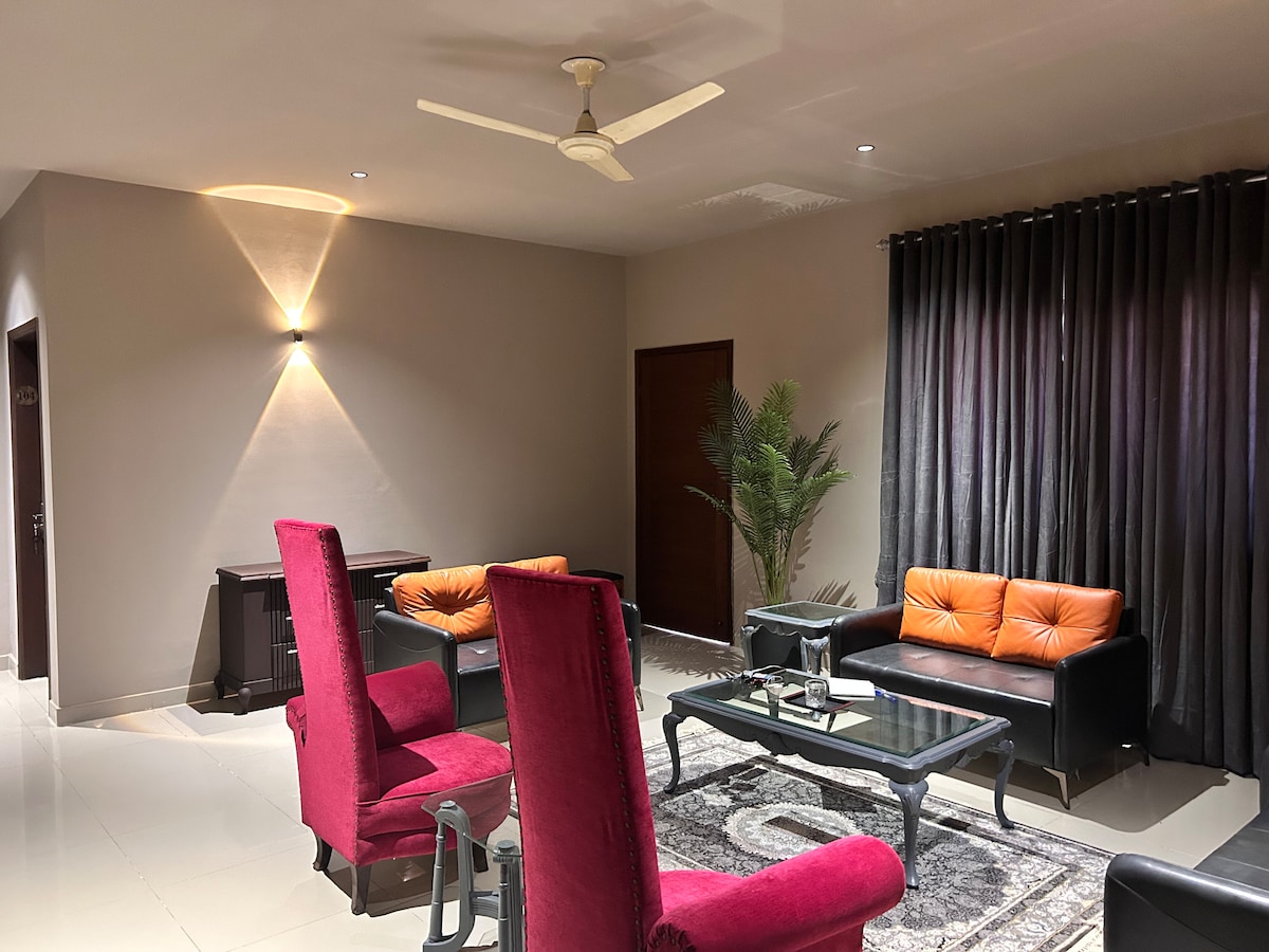 tas ir viss divstāvu Banglow 4 guļamistabas ar virtuvi un atpūtas telpu neatkarīgu māju. uzkopšanas pakalpojums pieejams uzturēšanās laikā alternatīvās dienās, kad mani darbinieki ierodas un uzkopj , pieejama pārtikas preču piegāde mājās Atpūtieties kopā ar visu ģimeni šajā mierīgajā mājoklī. Welcom mierīga istaba stilīgā DHA mājā! Piedāvājot modernas ērtības un mierīgu gaisotni, tā ir ideāla atpūta. Iegremdējieties plīša gultasveļā, baudiet dabisko apgaismojumu pa lieliem logiem un atpūtieties mājīgajā atpūtas zonā