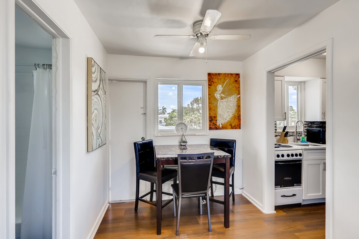 Laipni lūdzam SALTHAUS West Palm Beach. Viesu nams, kas ir ideāli piemērots nelielām grupām, ģimenēm vai atpūtai. 3 apartamenti. Izmitinām 9 personas. Mans viesu nams atrodas Vestpalmbīčas centrā. Mūsu mājoklis atrodas klusā dzīvojamā rajonā, un tajā ir trīs pārdomāti iekārtoti apartamenti, kas ieskauj pavisam jaunu baseina oāzi. Ja vēlaties rezervēt tikai vienu no viesu apartamentiem, lūdzu, pārbaudiet atsevišķos sludinājumus mūsu Airbnb profilā.