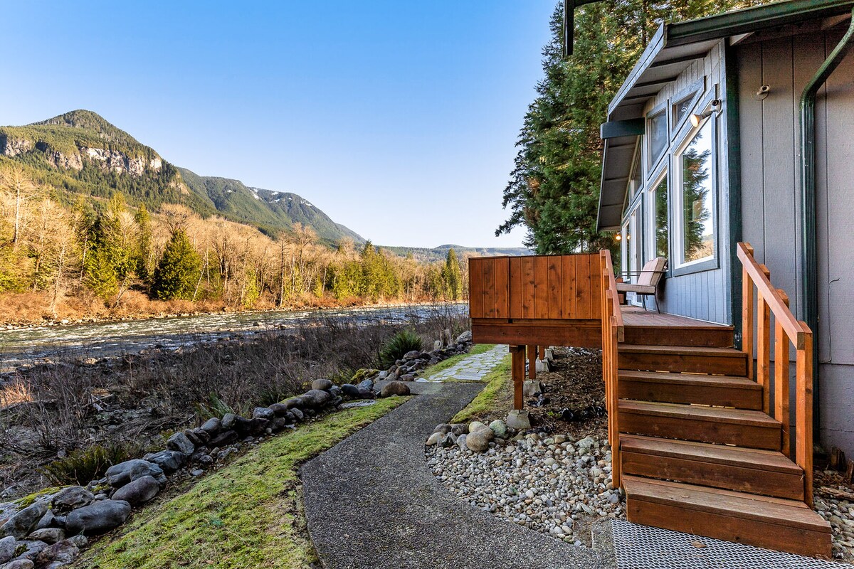 Mūsdienīgs namiņš pie upes, kas atrodas divos akros pie Skykomish upes. Plaša ainaviska telpa dabā netālu no Stīvena Pass slēpošanas kūrorta, pārgājienu takām un piedzīvojumiem brīvā dabā visa gada garumā. No īpašuma paveras satriecošs skats uz upi, mežu un kalniem. Nāciet baudīt terasi, BBQ un ugunskura vietu.Namiņā ir divas "queen" izmēra gultas guļamistabā ar skatu uz upi un divas dzīvojamās istabas. Izbaudiet plostu pa upi vai makšķerēšanu no īpašuma, kā arī vietējos pārgājienus, slēpošanu un kāpšanu kalnos.
