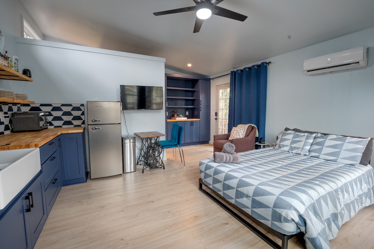Mājīga mikroviļņu kabīne nelielā māju kopienā strupceļā. 5 minūšu gājiena attālumā no Lakewood Amphitheater un Screen Gems studijām. 10 minūšu brauciena attālumā no lidostas. Tika veidots kā avārijas paliktnis ikvienam pilsētā darbam, lidojumam vai ceļojumam. Iekšā ir 4x8x5 matracis ir dvīņu. Guļ 1 ērti, iespējams, 2. Piekļuve vannasistabai ir aptuveni 20 pēdu attālumā. Iekārtā ir elektriskā, maiņstrāva, apkure, televizors, Wi-Fi, ugunskura vieta, bezmaksas autostāvvieta, glabātuve zem tās. Tuvu šosejai, lai būtu garāmbraucošo automašīnu viļņi.