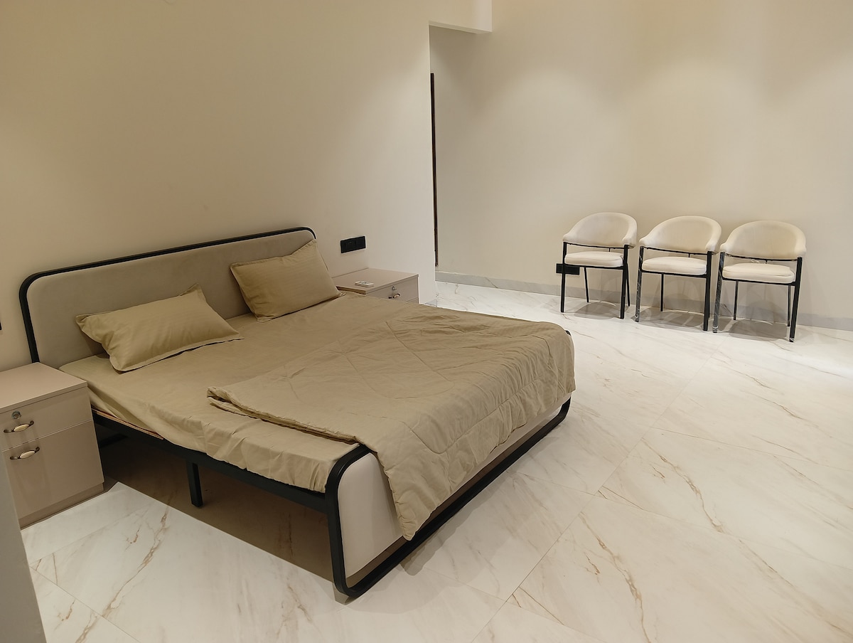 New modern construction,Hot running water. Full privacy,secure,separate private entrance. Cctv installed, Clean and sanitized rooms. Attached balcony and open area. Movie theatre and shopping mall 5 min. away. RO water filter, microwave, refrigerator and cooktop. Above 4 days booking Electricity /Maid/TV/uses extra..